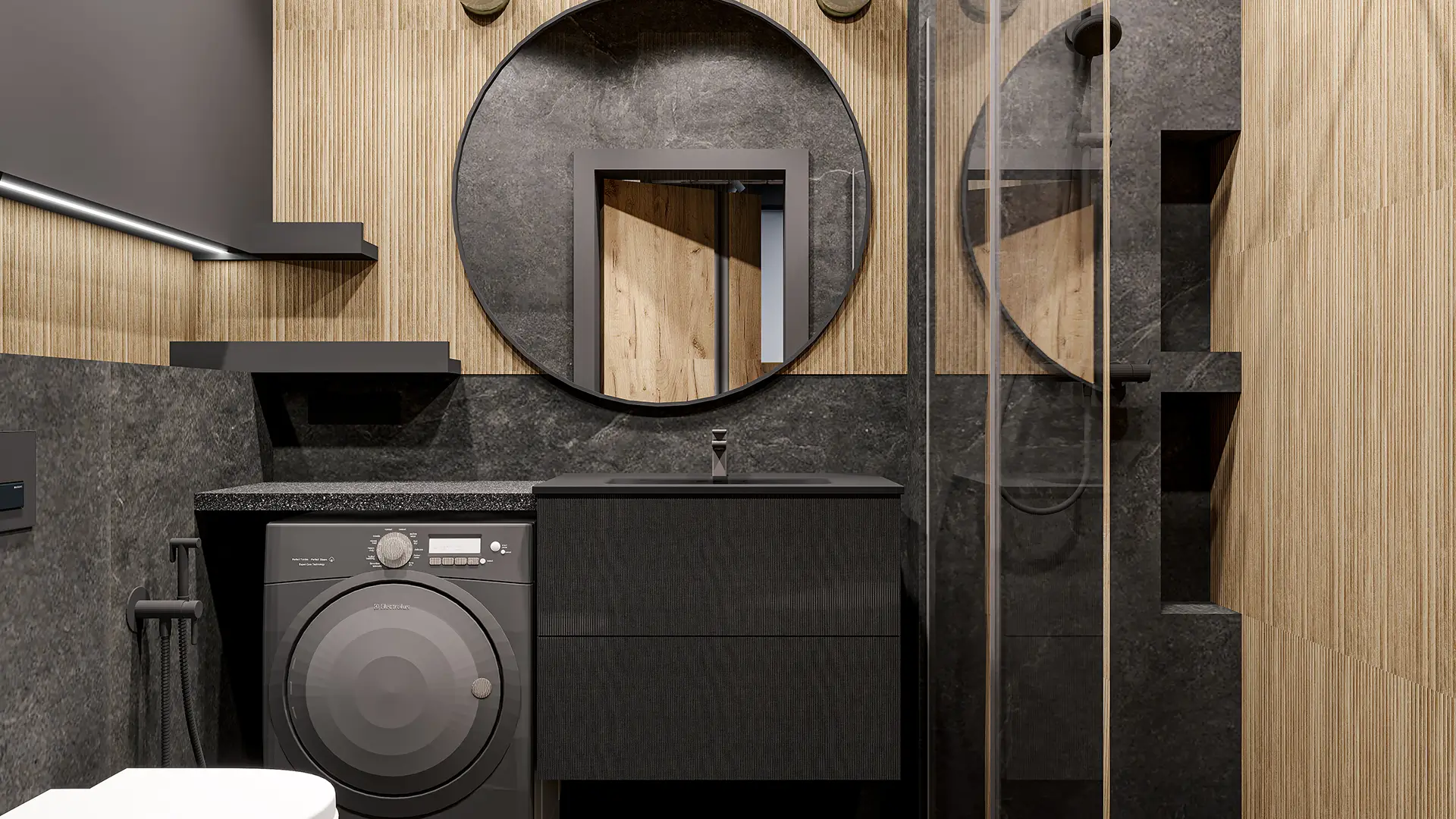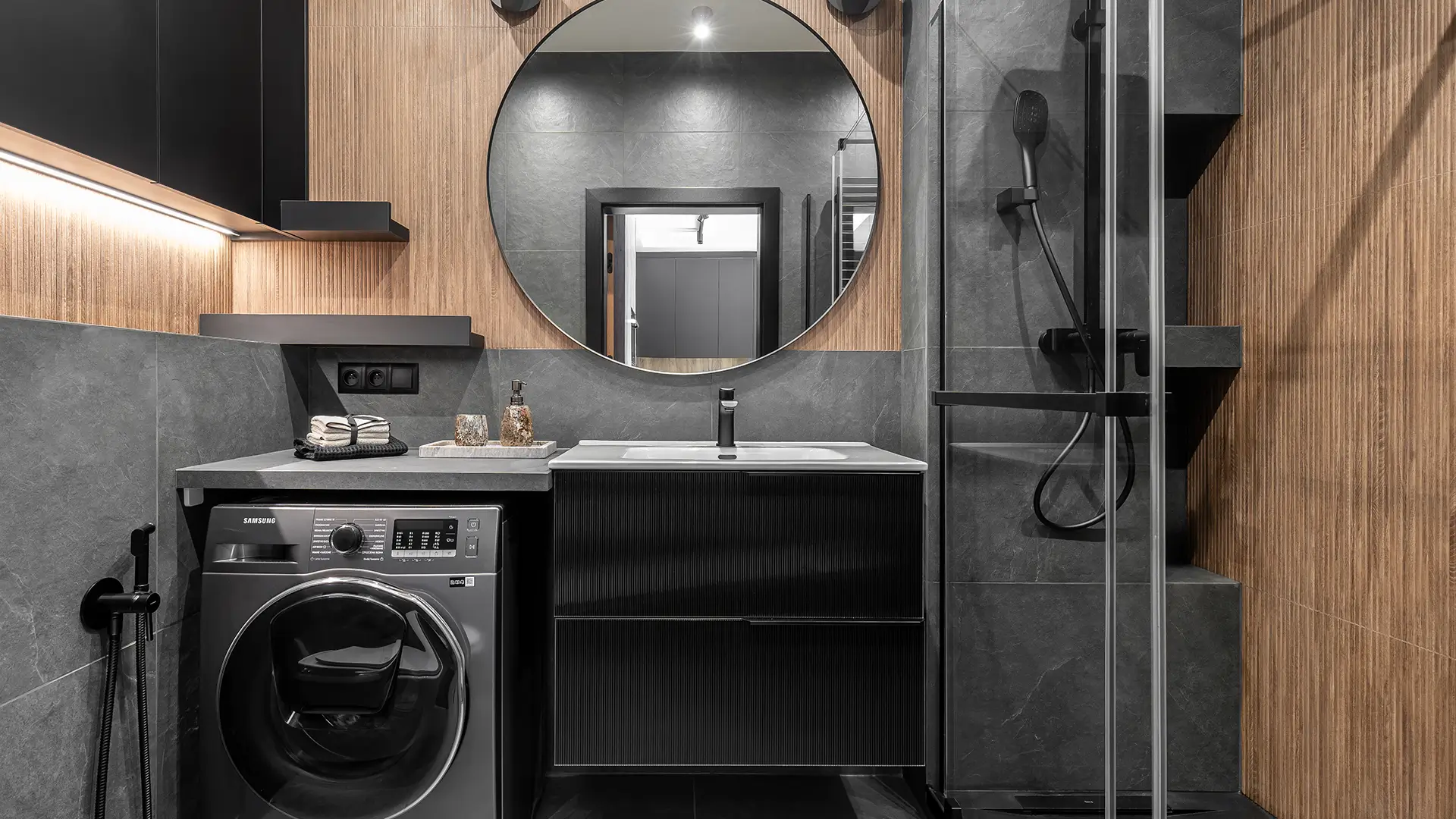 - Całościowe wykończenie łazienki.